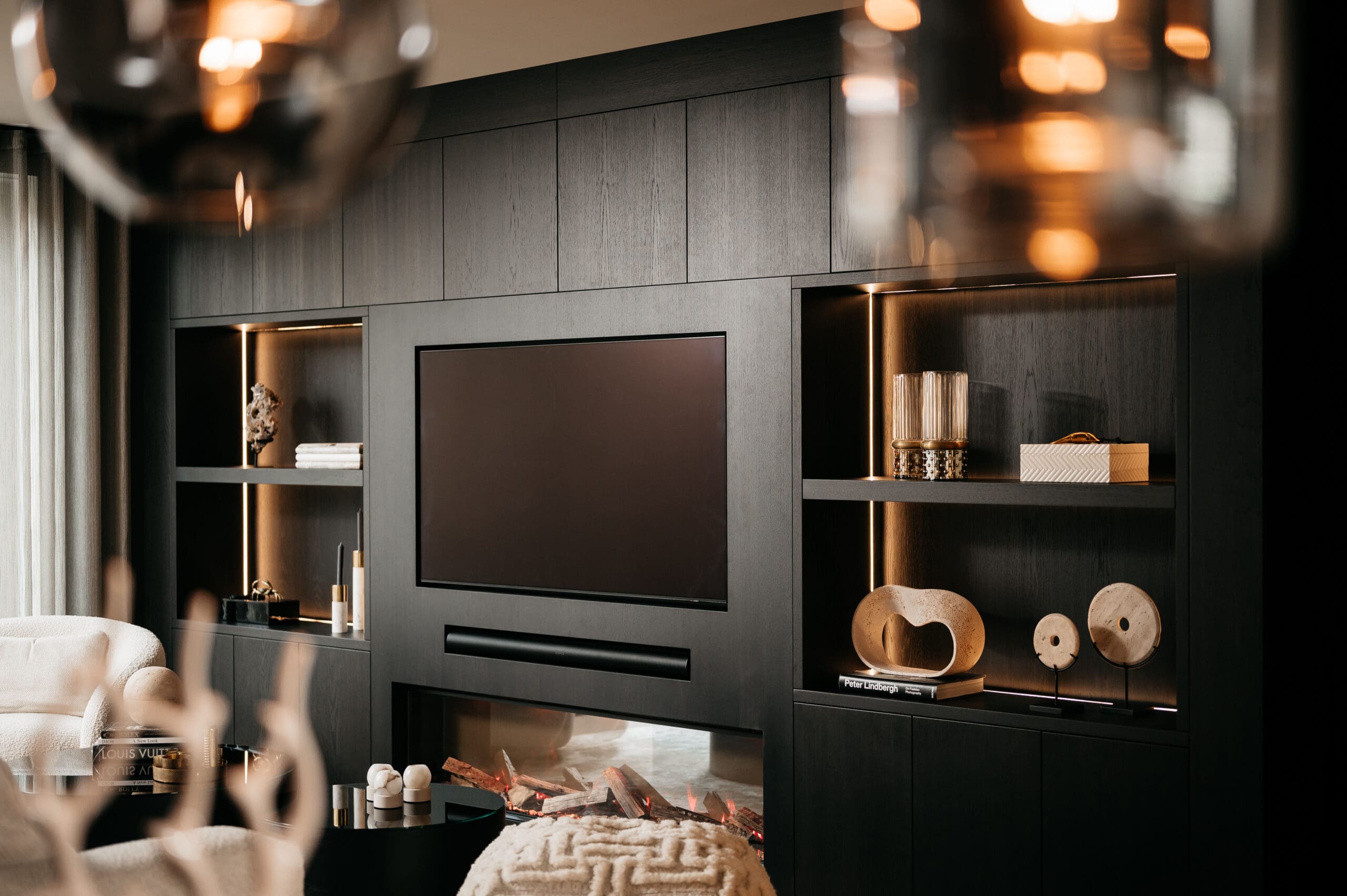 Creëer de perfecte ambiance met sfeervolle led-strips onder jouw maatwerk cinewall of subtiele spotjes in open vakken. Een cinewall op maat, precies zoals jij het voor ogen hebt.