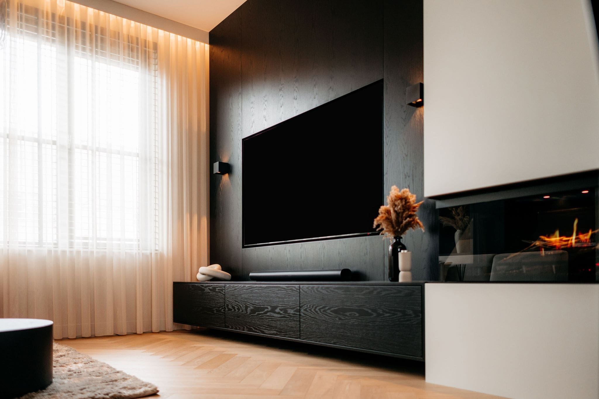 Je ploft neer op de bank. En dan gebeurt het. De muur tegenover je verandert. Komt tot leven. Een cinewall op maat. Stijlvol, volledig afgestemd op jouw wensen. Niet zomaar een televisiewand, maar een beleving. Een ruimte die thuiskomen écht bijzonder maakt. Jouw cinewall.