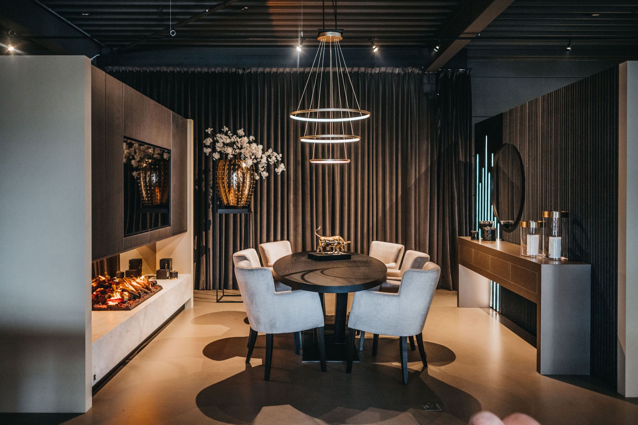 Als specialist in meubels in metropolitan luxury stijl maken wij cinewalls op maat. Zo weet u zeker dat uw cinewall met sfeerhaard naadloos in uw interieur past. Maak een gratis afspraak in onze showroom. U ontvangt altijd een persoonlijk voorstel met een prijs op maat. Geheel vrijblijvend!